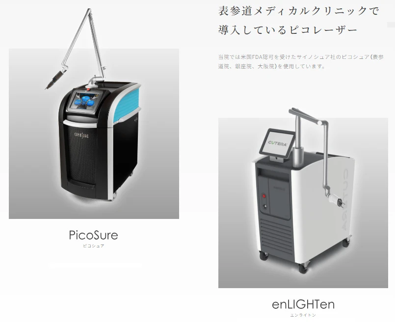 表参道メディカルクリニックは全院で米国FDA認可の高級機「ピコシュア」を採用しています。