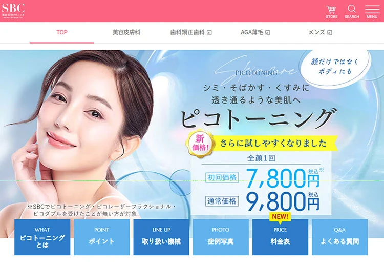 湘南美容クリニックには「シミ取り放題(ピコスポット)」や「大きさ問わず10個まで定額」という明確なプランがあります。