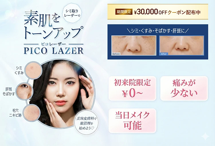 今、美容業界のシミ取りは幅広い種類のシミに対応できる『ピコレーザー』が人気です。